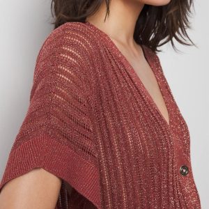 An open stitch pattern gives this cardi a slightly sheer look that’s perfect as a summer layer. Soft gold buttons and kimono sleeves make it fashion.