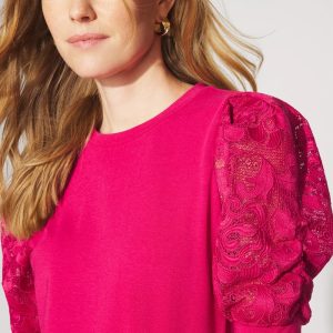 We’ve added a lace puff sleeve to our core cotton modal jersey tee for a feminine spin on a classic look. It’s an easy way to dress up your jeans and shorts.