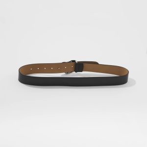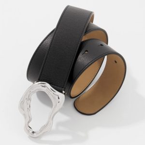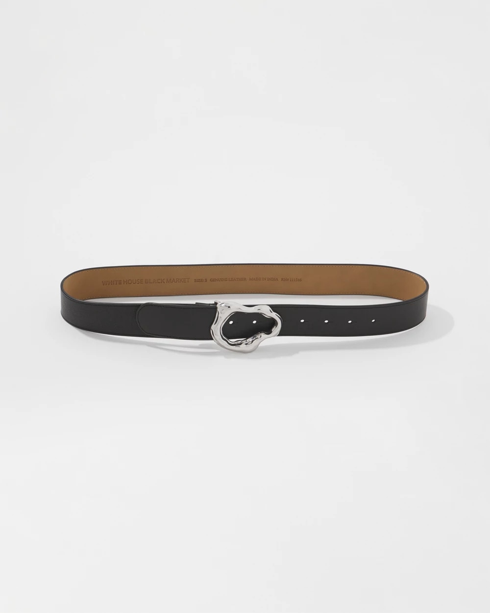 Instantly elevate your jeans or shorts with this black leather belt with a sculptural silver buckle. Also available in ecru with gold buckle.