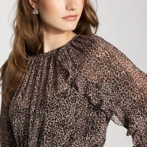 Romance + fashion meet in this short dress that can take you from desk to dinner in style. A neutral, yet chic leopard print is just one detail to love. There’s also cascading ruffles and tiered raglan sleeves, and a removable self-tie belt with a metal O-ring. Wear it with heels or for fall, add tights and tall boots.