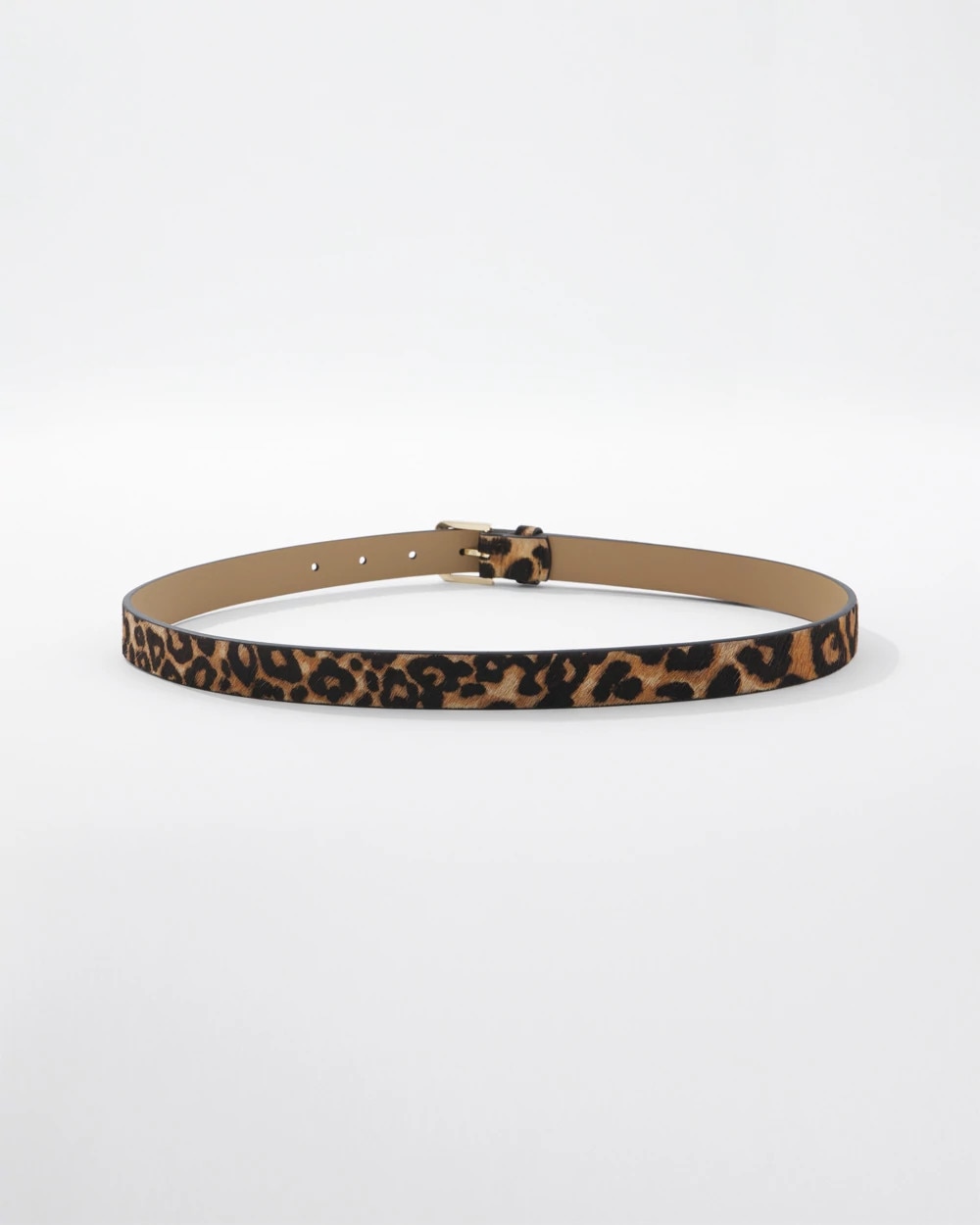 This skinny pant belt will be the perfect addition to your wardrobe. Made from genuine haircalf and finished with a gold buckle, it’s an easy + subtle way to add a leopard print to your look. Pair it with our matching Leopard Ankle Boot and Leopard Tassel Mule.