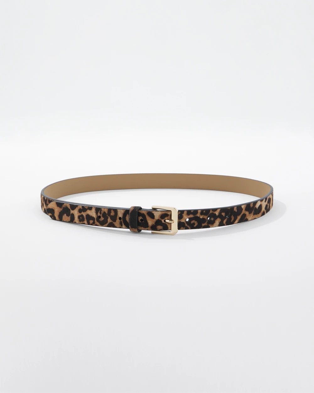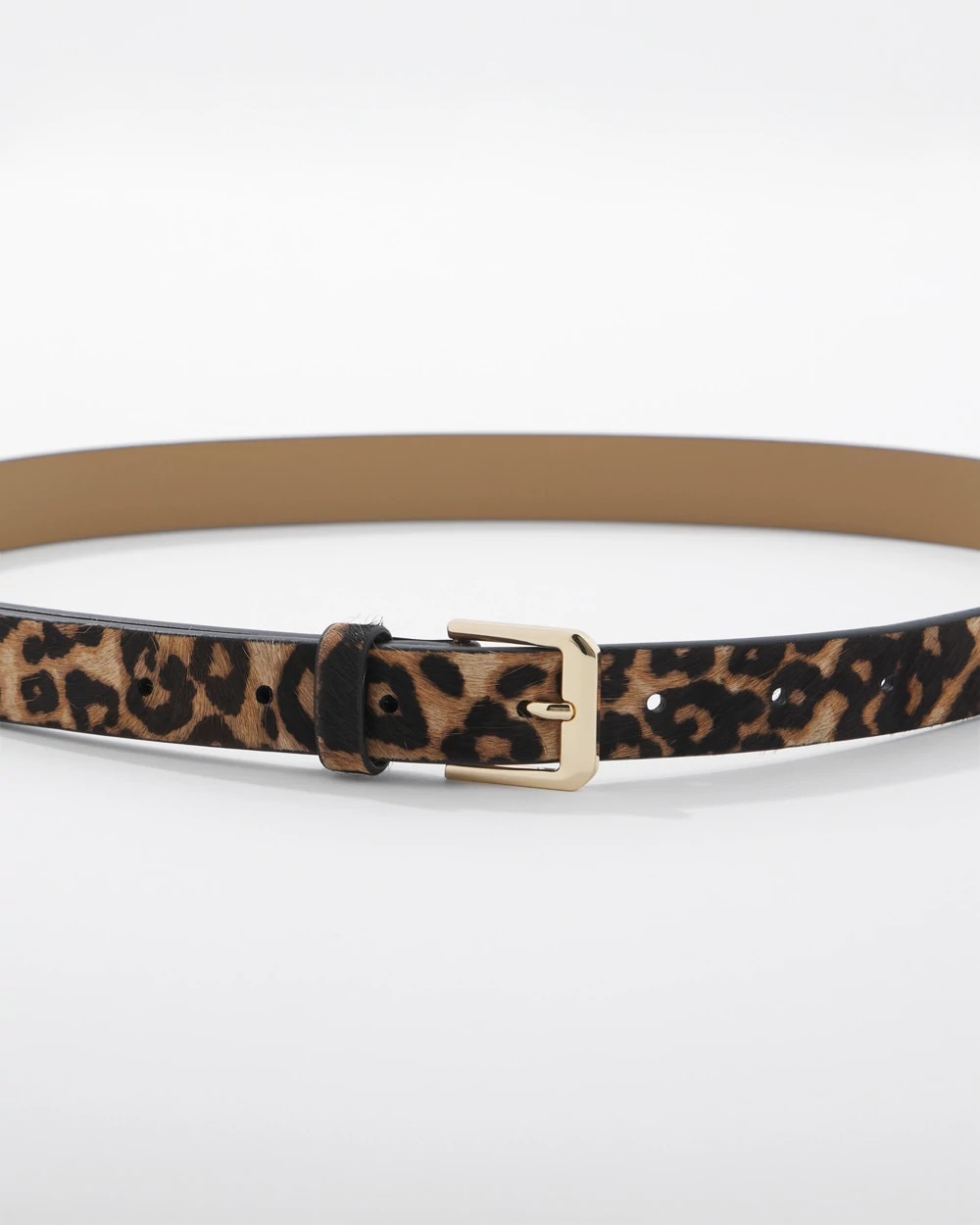 This skinny pant belt will be the perfect addition to your wardrobe. Made from genuine haircalf and finished with a gold buckle, it’s an easy + subtle way to add a leopard print to your look. Pair it with our matching Leopard Ankle Boot and Leopard Tassel Mule.