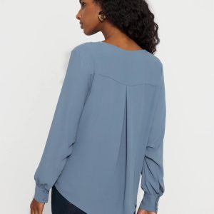 Timeless + chic, this long-sleeve blouse is adorned with self-covered buttons. Made from a crepe fabric that gives you a stylish drape. An easy office-ready look.