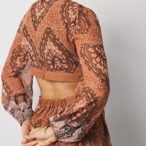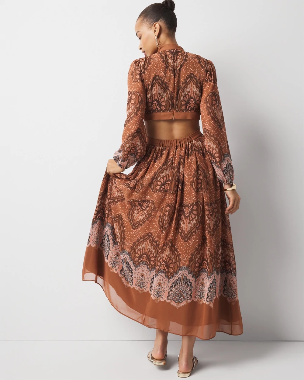 Reach for this dress when you want to turn heads. Thanks to the deep V-neckline and cut-outs on the sides and back, this midi dress is statement-making. The long sleeves have elastic at the cuffs for a blouson effect. A romantic + modern style.