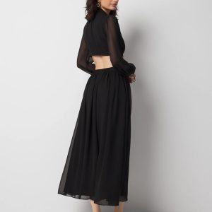Long-Sleeve V-Neck Cutout Midi Dress