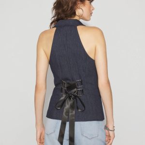 Longline Halter Vest with Lace-Up Back