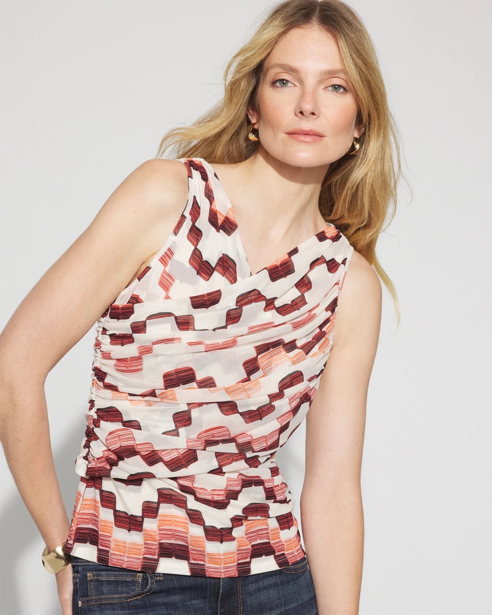 Crafted from a soft nylon mesh fabric, this self-lined tank top has a surplice neckline and back. Shirring details throughout the body give you a flattering shape. A fitted top that will look chic with denim or black pants.