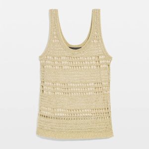 Add a dose of shine to your summer outfit with this metallic scoop neck tank top. Designed with contrast piping details along the neckline, sleeve holes and hem. A great look to pair with denim or shorts.