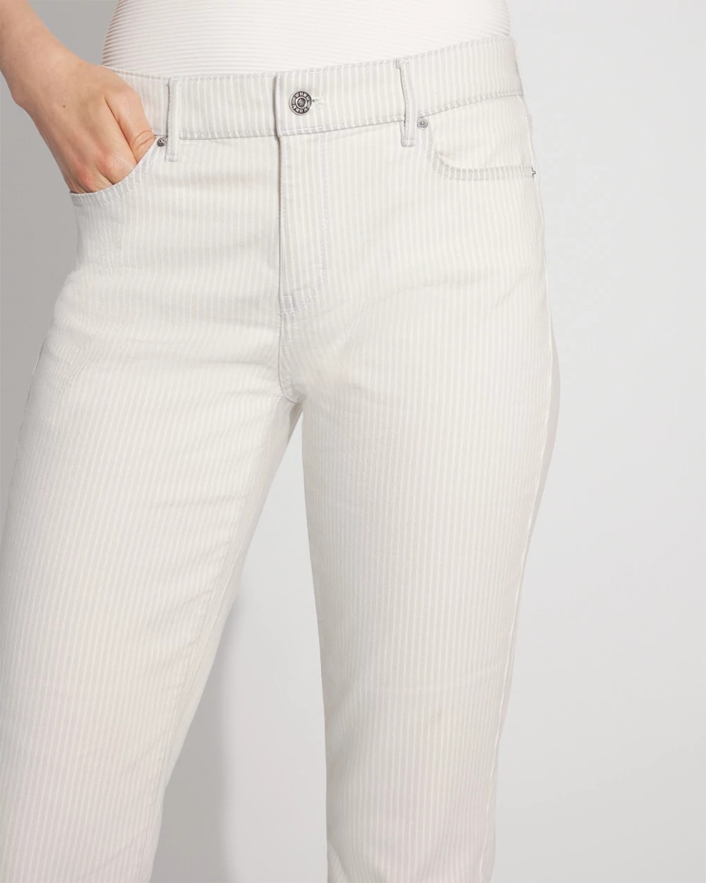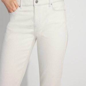 Girlfriend mid-rise jeans are cut to sit low on your hips with a slim straight leg fit and rolled ankle cuff. It’s this female-friendly silhouette that makes this cut so popular. We’ve crafted this pair from a striped cotton and Tencel denim fabric. The washed technique allows for darkening around the seams, this is normal and adds a chic style element that varies from pair to pair.