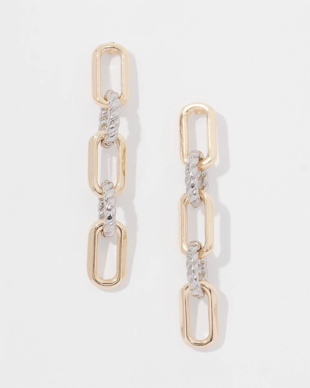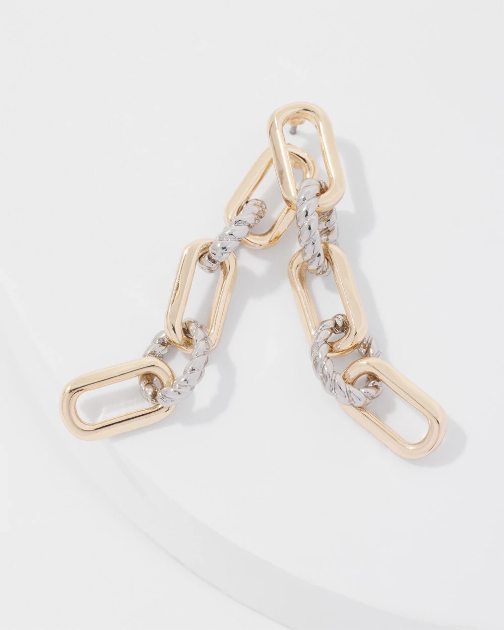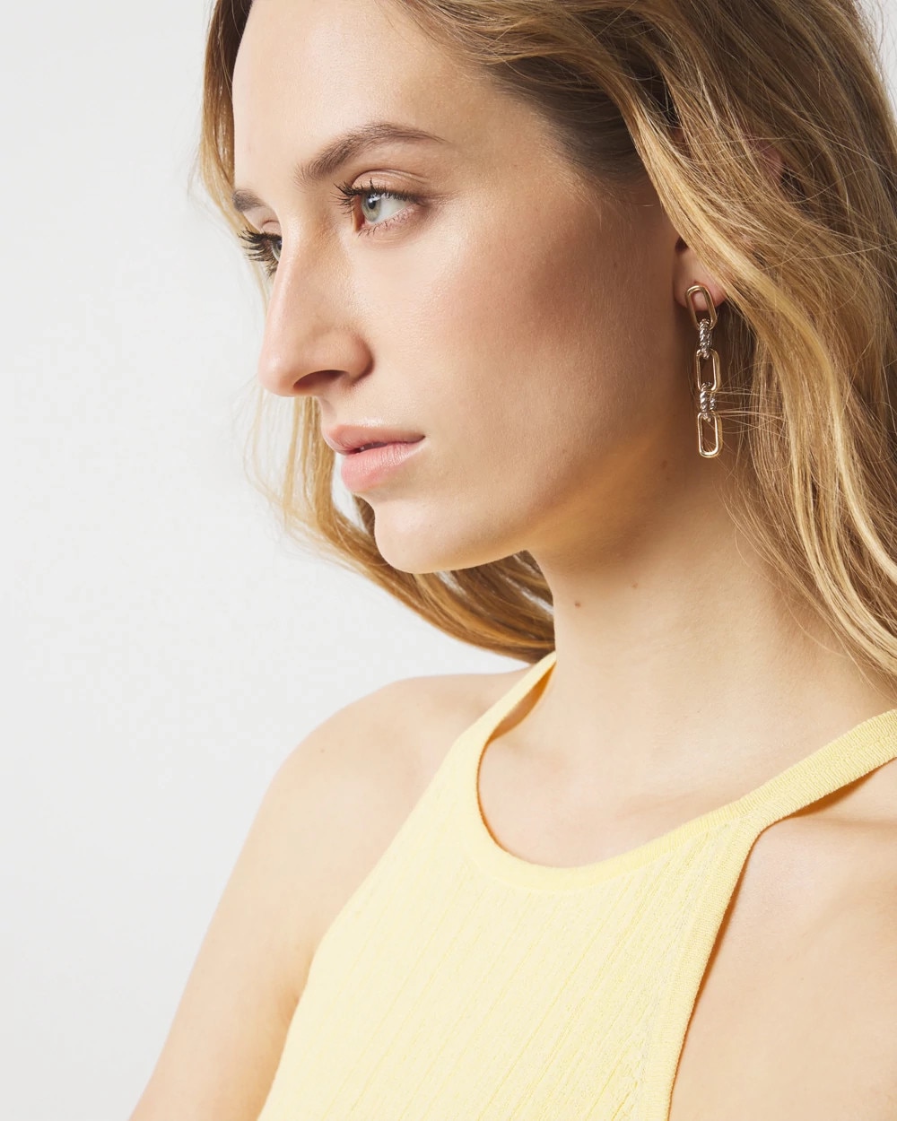 These earrings feature silver rope twist links connected to simple gold links to create these elegant, yet simple drop earrings. Pair with other pieces in our Mixed Metal Collection.