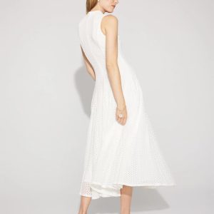 Crafted from a soft, stretchy knit lace, this midi dress is designed with a modern mock neck and a godet pleated skirt for fullness. A look that’s form-fitting + feminine and can easily go to brunch or dinner.