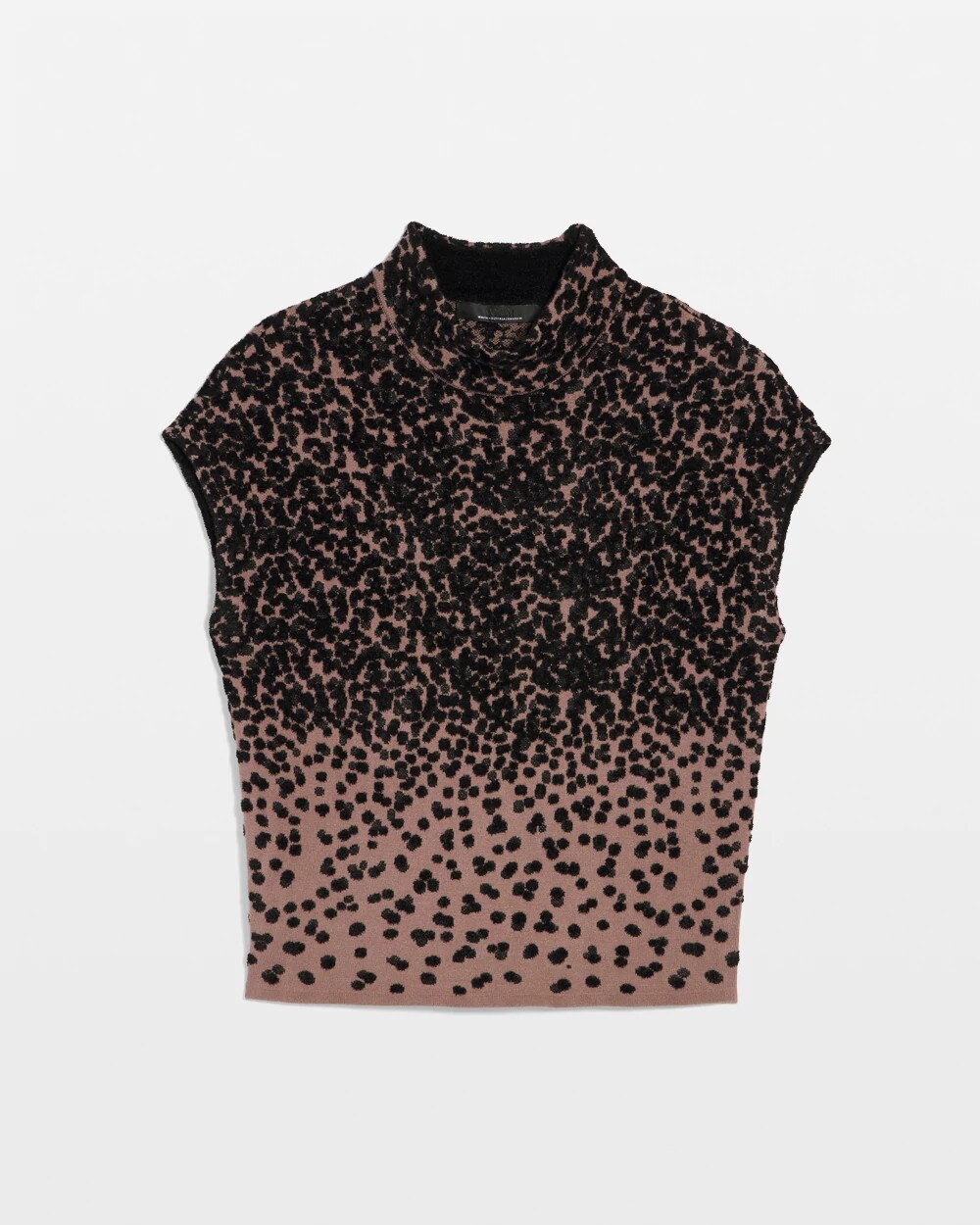 The ombre leopard print is statement making on its own, then we added lurex for a slight allover sheen that elevates the look further. An easy mock neck and short sleeves give this sweater a modern silhouette.