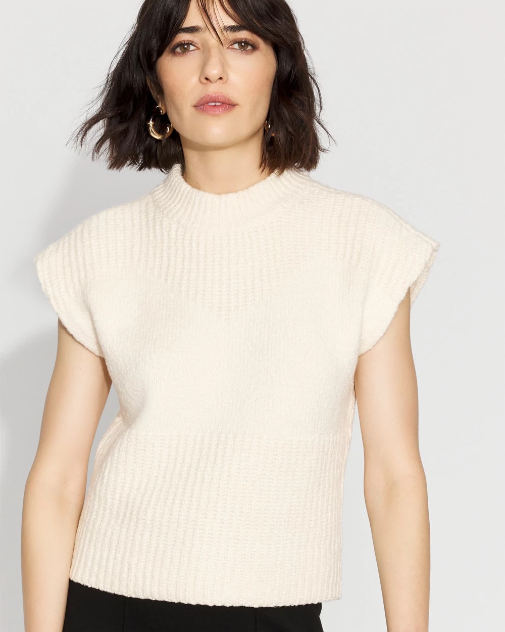 A textured pattern adds a fashion touch to this cotton blend sweater. We call it a vest due to the wider arm holes but go ahead and wear it on its own or over a poplin shirt. A versatile fall look you can style any way you choose.