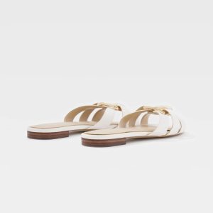 Create an elevated look for shorts and jeans or add extra style to your dresses with these timeless strappy flats that are designed with a mother of pearl buckle. Accessorize with jewelry pieces from the Mother of Pearl Collection.