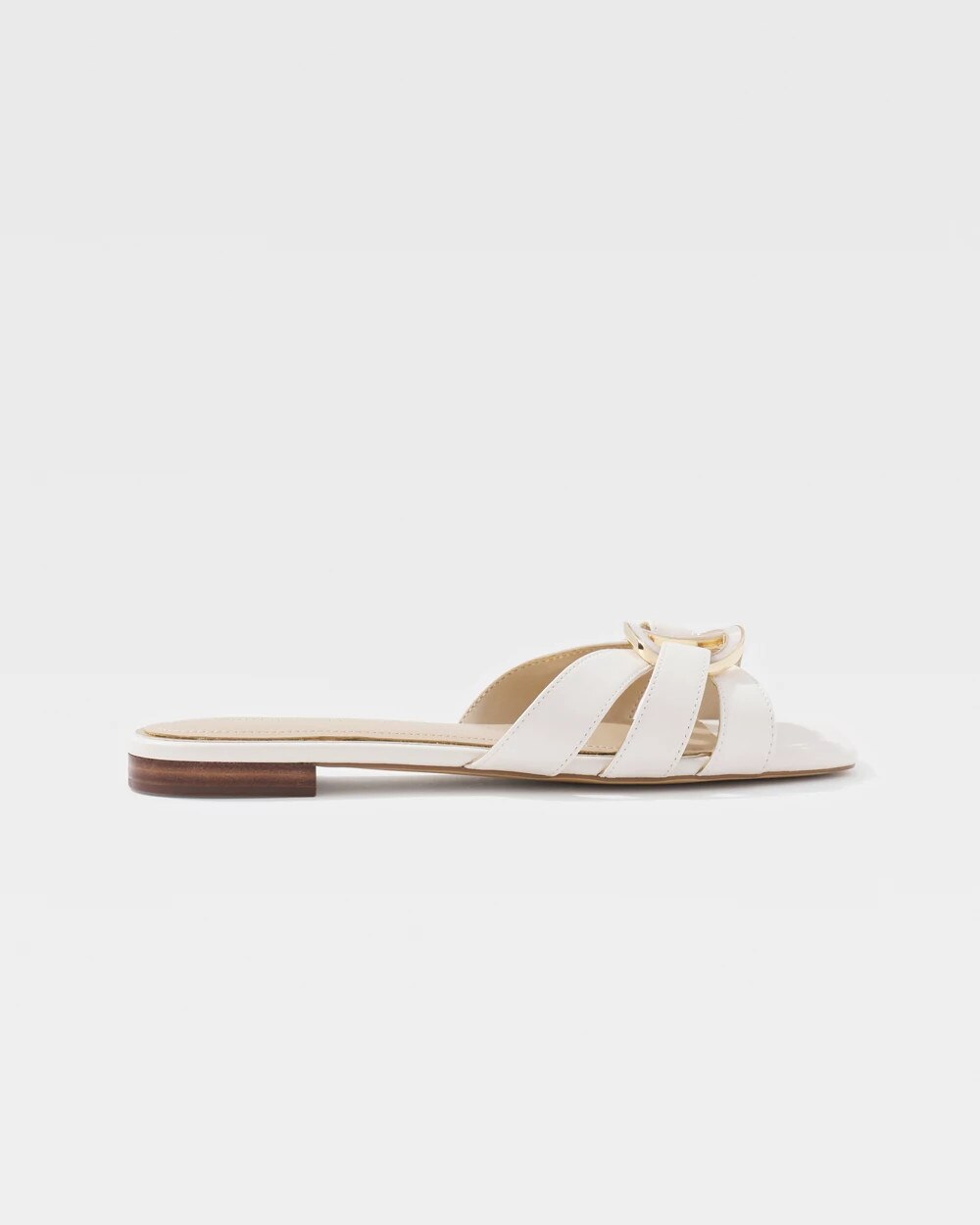 Create an elevated look for shorts and jeans or add extra style to your dresses with these timeless strappy flats that are designed with a mother of pearl buckle. Accessorize with jewelry pieces from the Mother of Pearl Collection.