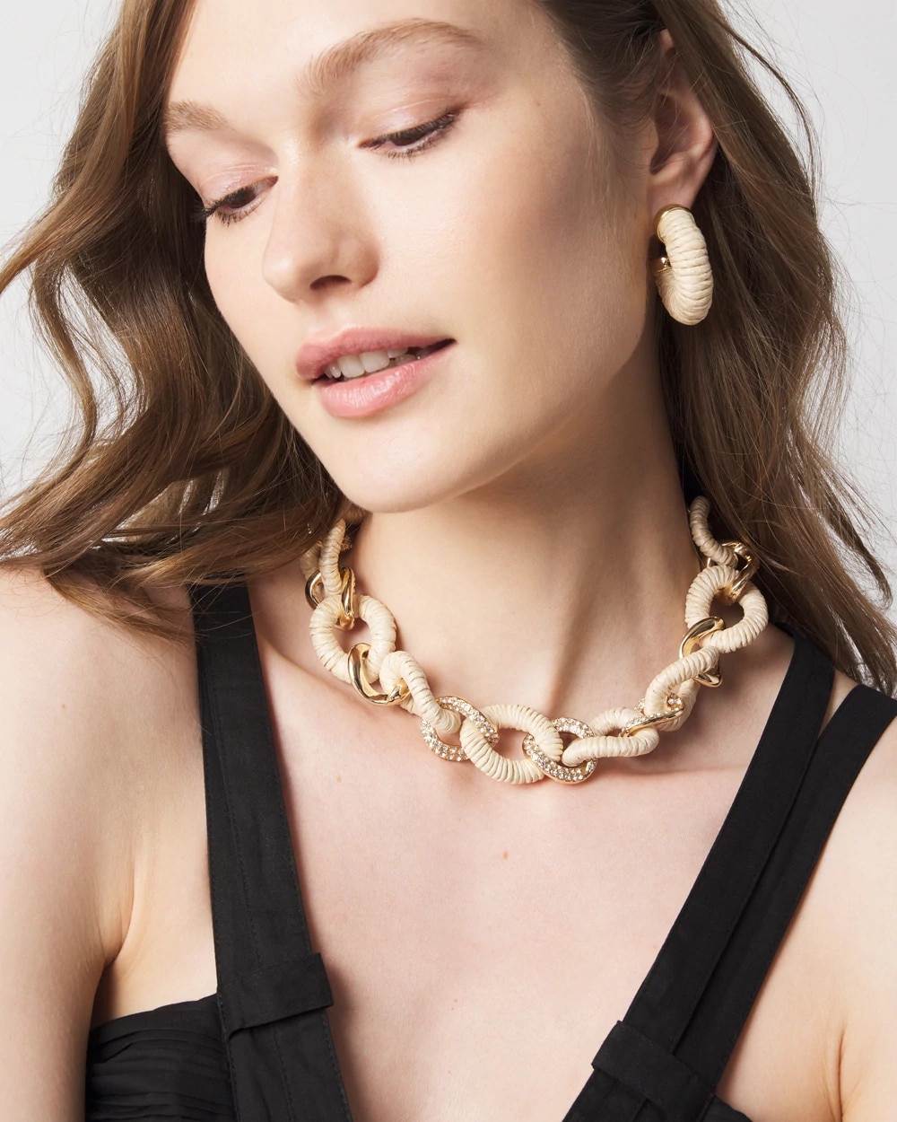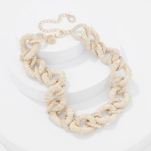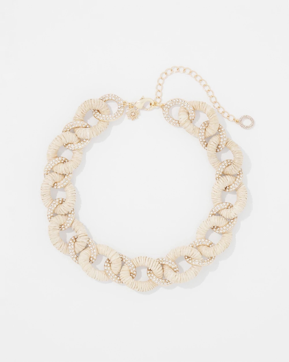 Natural Raffia + Crystal Link Necklace