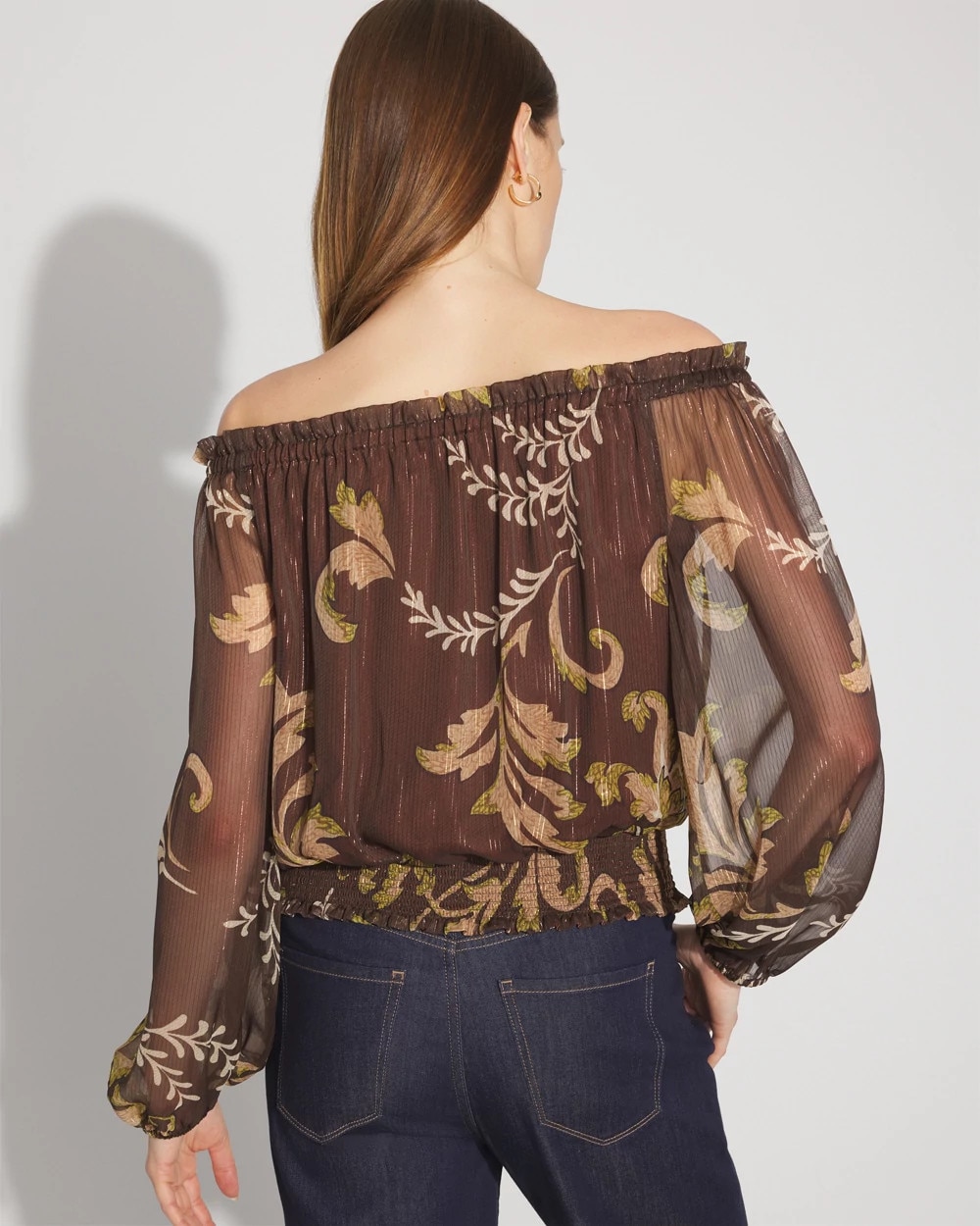 This blouse is why the fashion term “boho chic” was created. A seriously feminine blouse with blouson sleeves, a smocked hem for the perfect + comfortable fit and a fetching floral print with gold lurex throughout for subtle sheen. Wear it with jeans, pants, shorts or a flowy skirt.