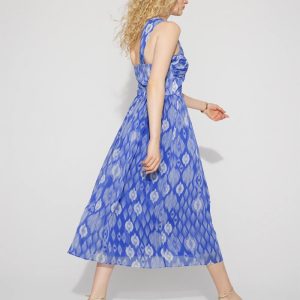 One-Shoulder Ikat Print Midi Dress