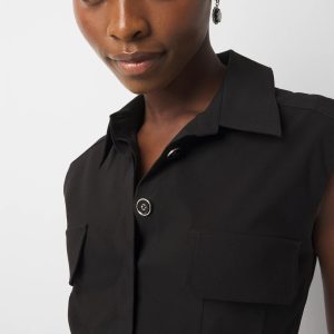 This shirt dress comes with a faux leather belt with sculptural buckle and functional chest pockets. A simple relaxed skirt with an easy fit makes this a great choice for multiple options including work or anytime you want to look polished + casual.