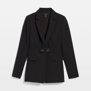 We added a belt with two faux tortoise buttons rimmed in gold to our bestselling one-button blazer, giving you a feminine silhouette. The belt is removable, but we think you’ll want to keep this one in place. Crafted from our popular luxe double weave, you can pair this jacket back to any of our pants in the same fabric.
