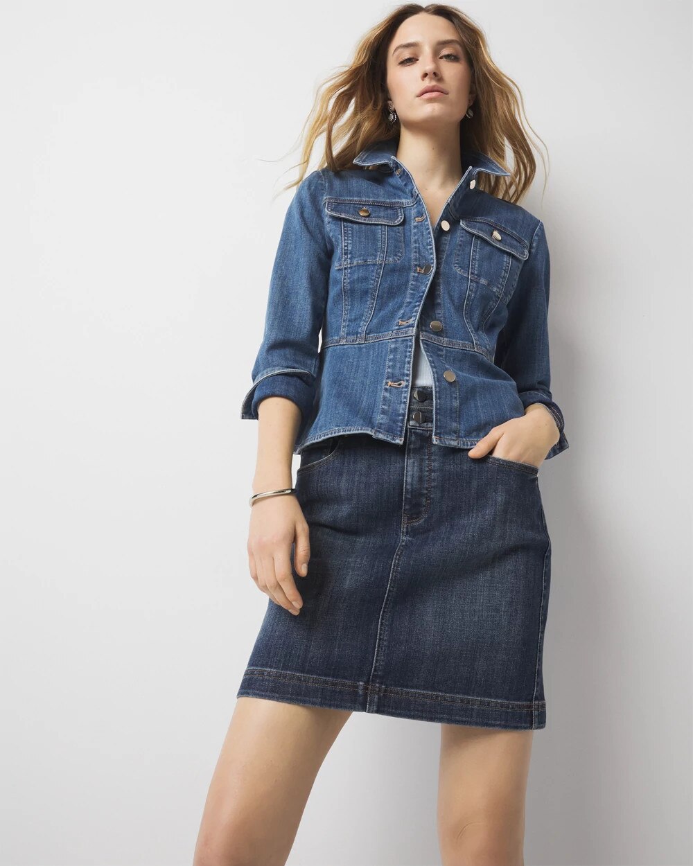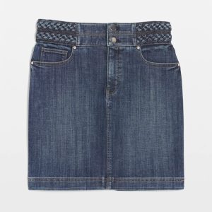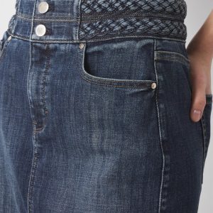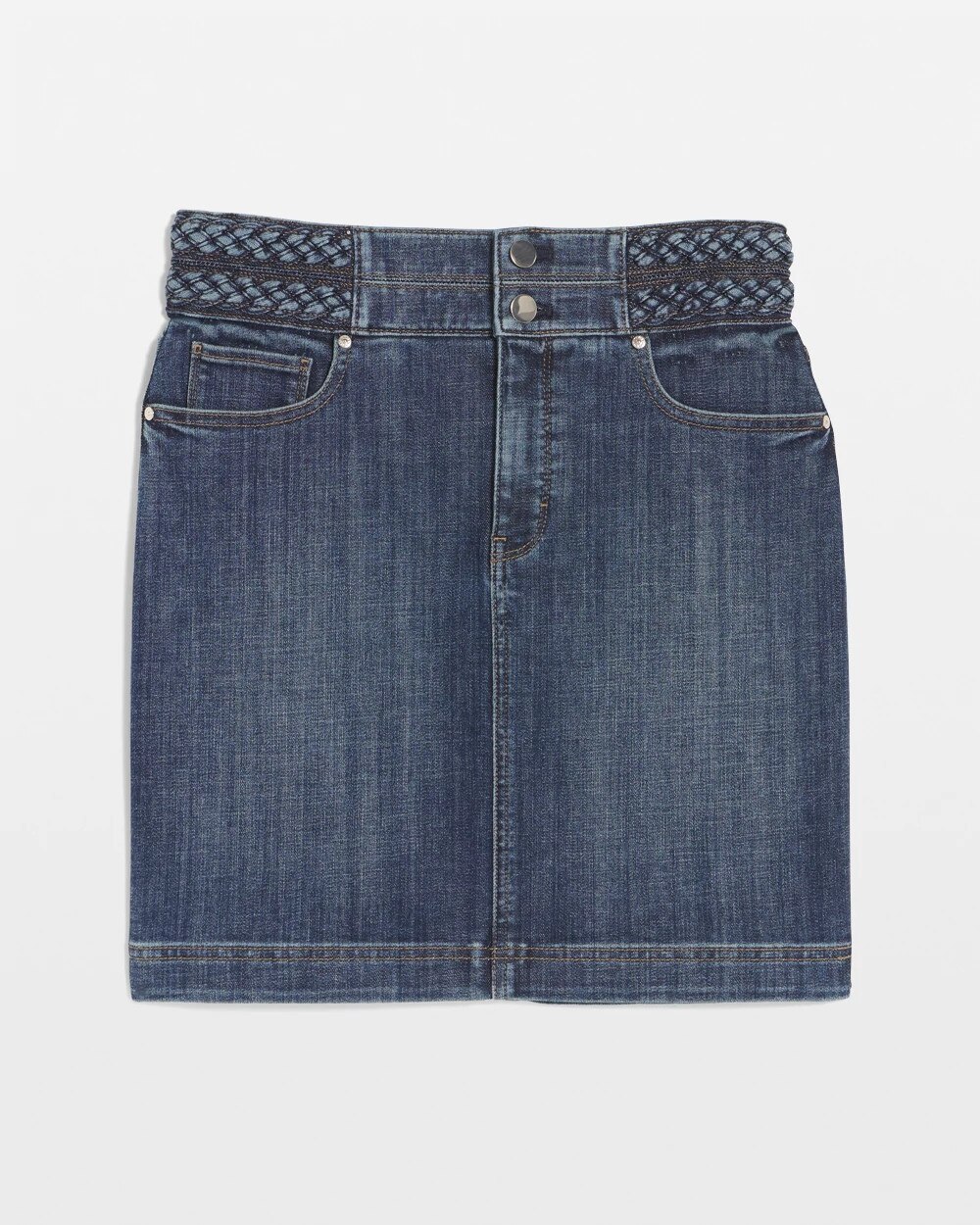A double row of braided denim at the waistline refreshes this classic jean skirt design. Wear it with any of your favorite summer tees and tops.