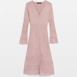 Spun from a rayon and nylon yarn, this polished casual sweater midi is stretchy + lightweight, making it an easy look to transition between seasons. A row of center front buttons gets you in and out. Scalloped trim at the hem and cuffs up the style factor. A pretty dress to you can wear to any occasion.