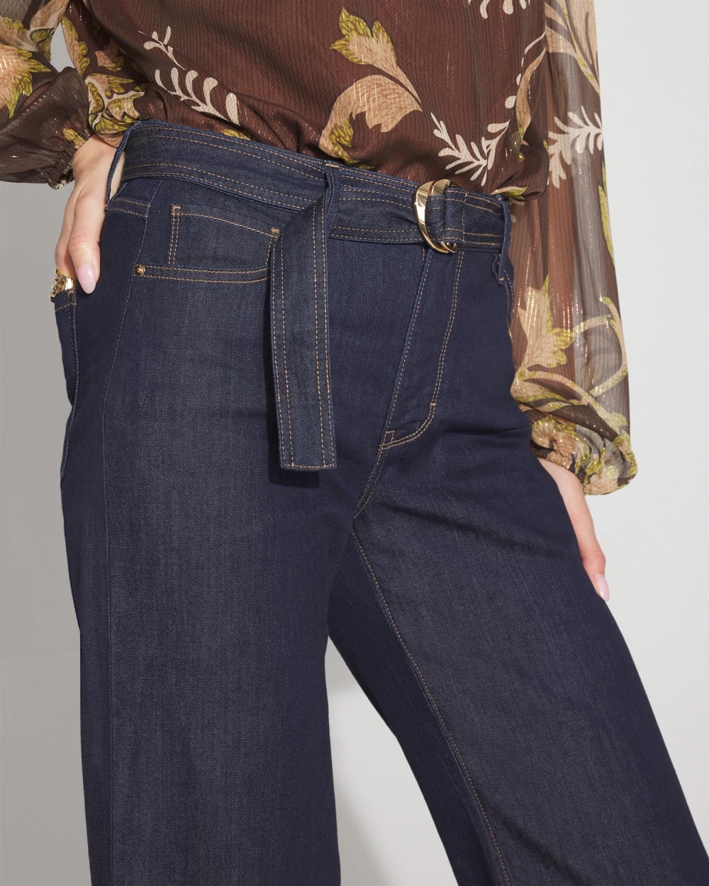 A dark rinse and gold D-ring belt elevates these wide-leg jeans. A polished denim style to dress-up for the office with a blazer and heels. We also heard you on our inseam and we’ve shortened our regular length 1-inch, while keeping the short and long lengths you love.