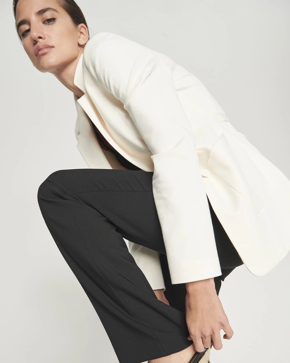 Meet our new Blake Bootcut Pant, the silhouette you love, cut from a luxe double weave fabric and designed with wide belt loops for a modern edge.