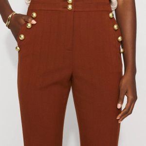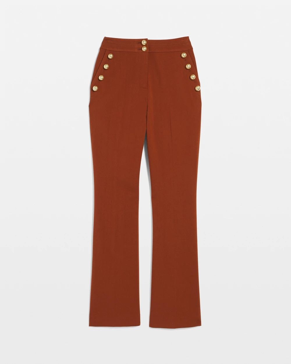 Meet our new Blake Slim Boot Pant, Mariner edition; cut from a soft, brushed twill fabric with matte gold buttons and a double waistband. This fashion pant will effortlessly take you from boardroom to bistro.