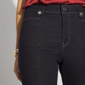 Hammered buttons and tabs add a stylish embellishment to these dark-washed bootcut jeans. We’ve also designed this pair with a front-seam to add a touch of polish. Pair with heels or boots and these are office ready or date night perfection. We also heard you on our inseam and we’ve shortened our regular length, while keeping the short and long lengths you love.