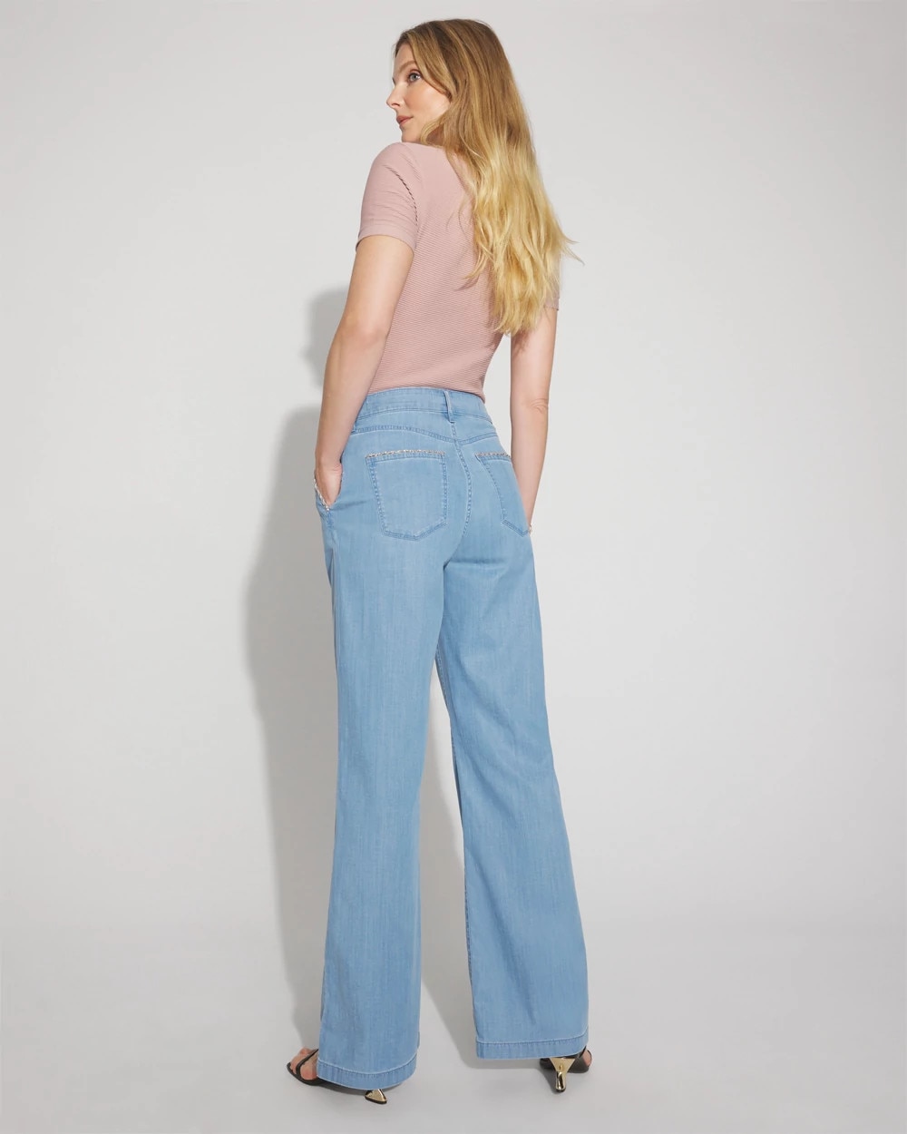 Petite High-Rise Wide-Leg Jean with Chain Trim