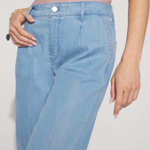 Petite High-Rise Wide-Leg Jean with Chain Trim