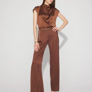 Crafted from a textured jacquard fabric with a sheen finish, these timeless wide-leg pants are an elegant wardrobe must-have. We’ve added front pleats and back darts for a flattering fit. Wear this pant with matching Satin Draped Short-Sleeve Blouse.