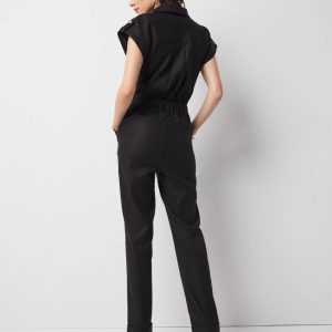 We’ve designed this jumpsuit with a tailored bottom and utility details on top making it a chic choice for the office. Made with front button and zip fly closure as well as shoulder tabs and chest pockets. There is smocking in the back waist for ease.