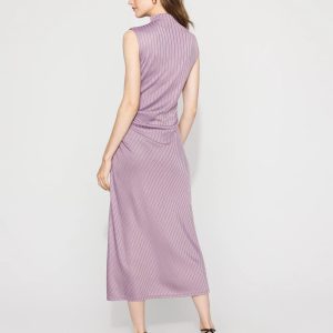Crafted from a variegated ribbed knit fabric, this bodycon sweater dress has flattering ruching on one side as well as a side slit for ease.