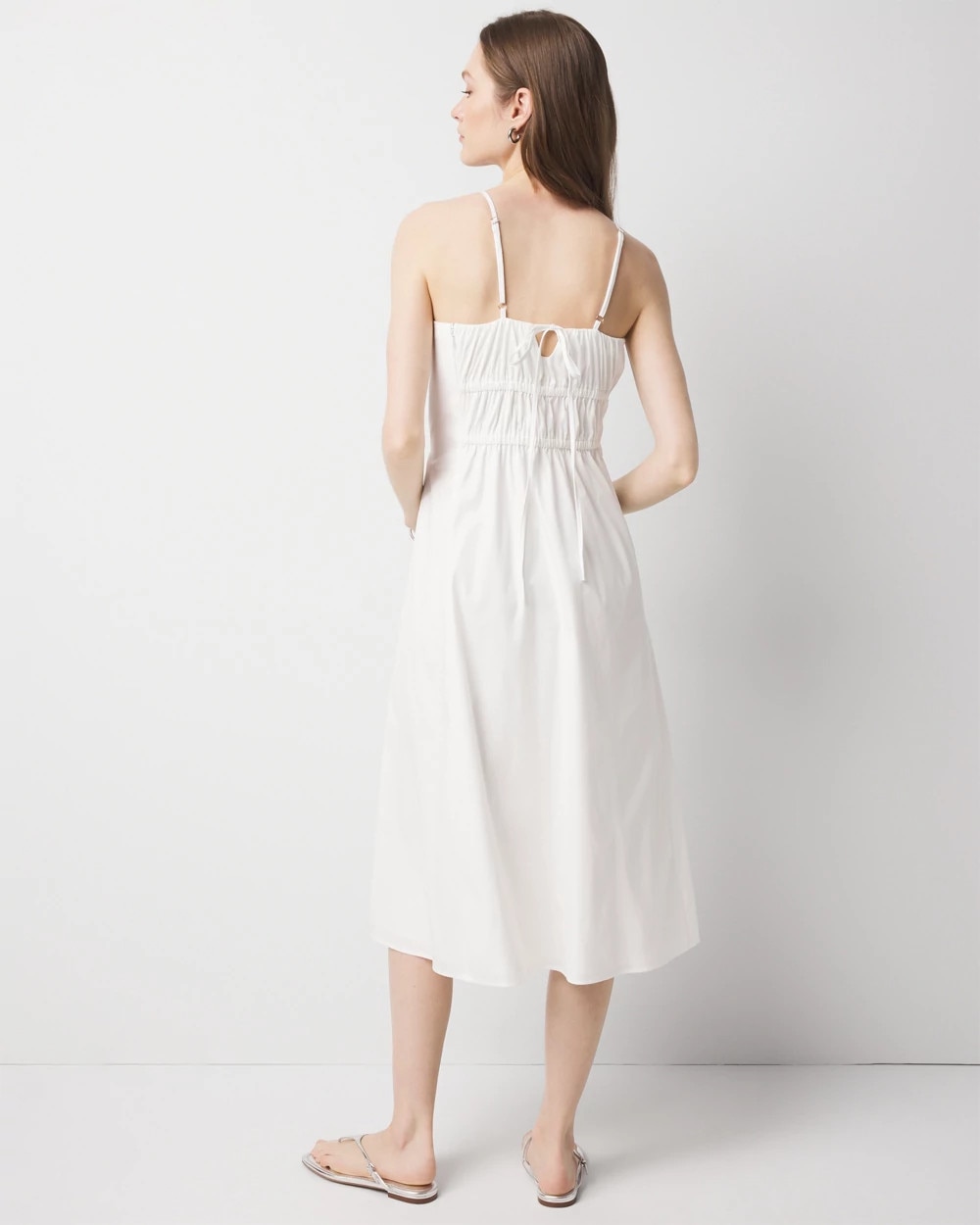 We designed this fit and flare midi dress from cotton-blend poplin and added smocking at the back and an adjustable tie. An easy summer dress for any occasion.