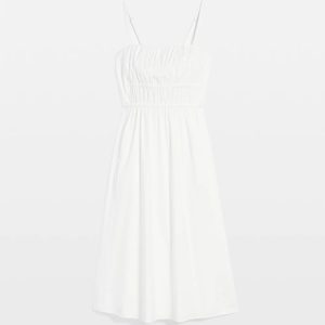 We designed this fit and flare midi dress from cotton-blend poplin and added smocking at the back and an adjustable tie. An easy summer dress for any occasion.