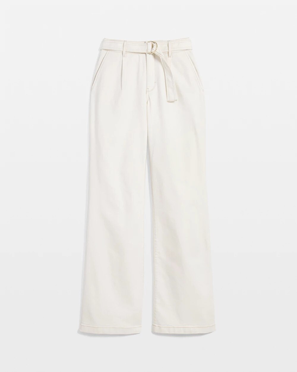 This clean trouser pant has a self-belt, pleats and pockets, giving it a casual yet polished look that works with your favorite shoes or sandals.