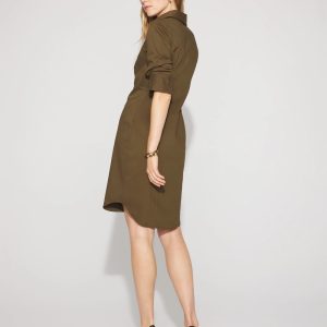 We’ve added center ruching to this classic shirt dress for a bodycon look that’s sexy yet polished. The ruched elbow sleeves are fixed to look rolled up. A great look for the office under a blazer, or for stepping out after work.