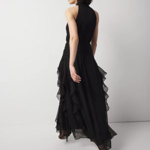 From the keyhole halter neckline to the cascading ruffles down the skirt, this flowy maxi dress has romance written all over it. We’ve designed it with shirring at the waist for a flattering fit. Wear with your favorite heels and strappy sandals.