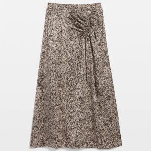 Petite Satin Leopard Cinched Skirt