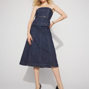 Petite Strapless Denim Midi Dress