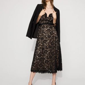 We designed this occasion dress for a big night out, that’s why it has a bustier top complete with boning for support, a self-belt for shaping and allover lace for a touch of elegance.