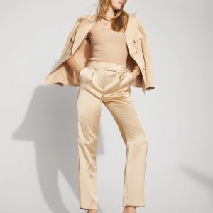 This satin edition of our new Zoey Straight Leg Pant is designed to give you dressed-up style at the office + after work. We’ve added an extended tab at the waist for a smooth finish as well as front pleats and back darts.