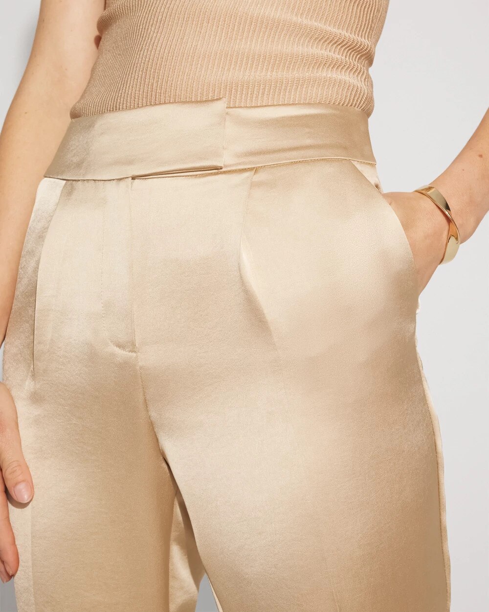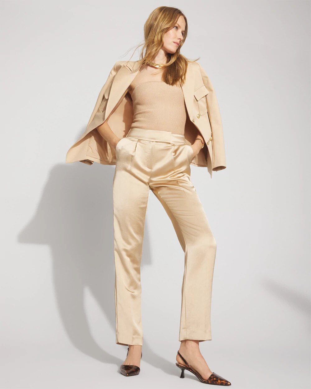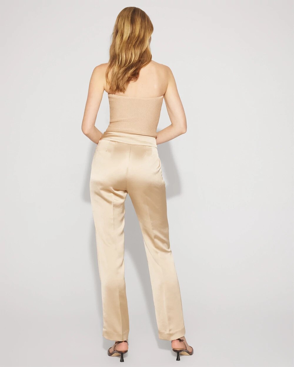 This satin edition of our new Zoey Straight Leg Pant is designed to give you dressed-up style at the office + after work. We’ve added an extended tab at the waist for a smooth finish as well as front pleats and back darts.