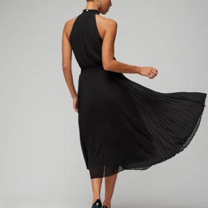 Pleated Halter Midi Dress