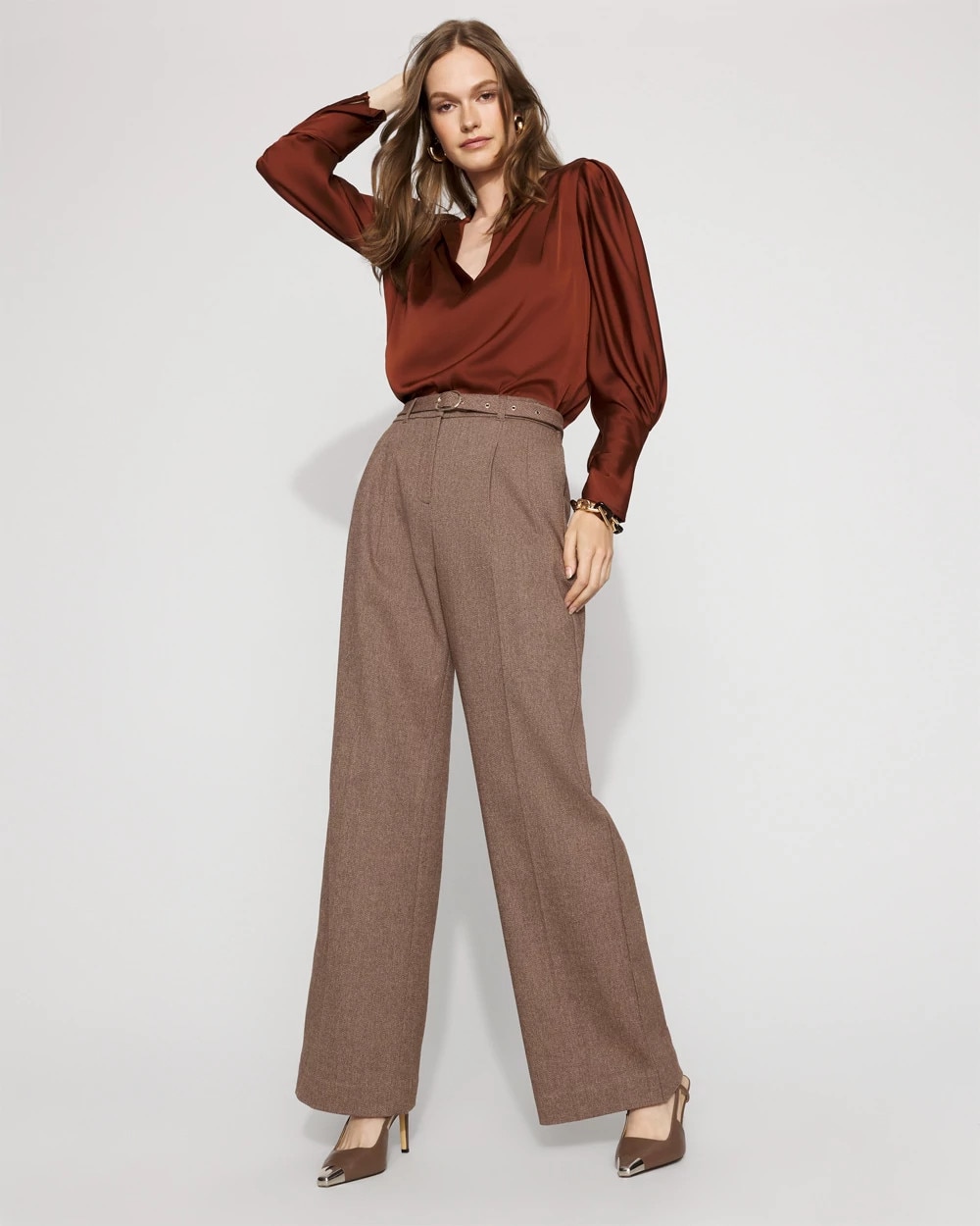 Designed with pleated sleeves to create a voluminous, dramatic silhouette, this satin blouse is the perfect pairing for your favorite pants.