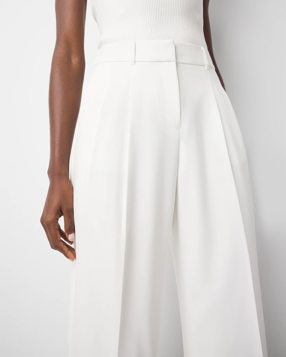 We’ve updated the fabric in our classic pleated wide leg pants to one that give you a flattering, supple drape. Pair this new pant with your favorite tops and heels.