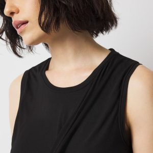 An easy fashion top with a draping neckline that creates a wrap look with pleating at the hem. A perfect tank for layering under a blazer at the office. Made from Tencel, a sustainable, lightweight and soft fabric.