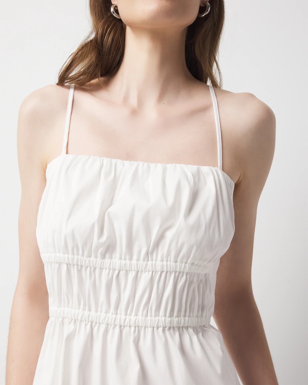 We designed this fit and flare midi dress from cotton-blend poplin and added smocking at the back and an adjustable tie. An easy summer dress for any occasion.